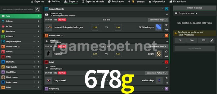 A aposta 678g oferece aos jogadores a experiência mais conveniente de apostas em eSports!